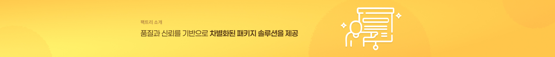 변화하는 라이프스타일에 대응한 혁신적인 패키징을 제안하고 공급하는 것, 팩트리(주)의 설립 이념입니다. 우리는 패키징을 통한 고객사의 부가가치의 창출, 소비자 니드의 충족을 위해 노력하고 있습니다.